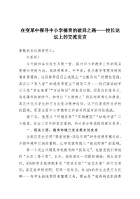 在变革中探寻中小学德育的破局之路——校长论坛上的交流发言
