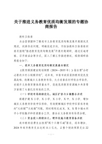 关于推进义务教育优质均衡发展的专题协商报告