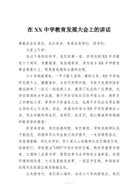 在XX中学教育发展大会上的讲话