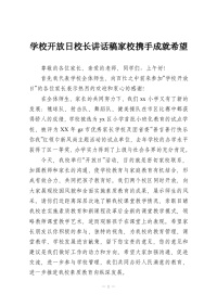 学校开放日校长讲话稿家校携手成就希望