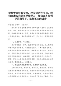 学校管理经验交流,校长讲话在今后,我们会虚心向兄弟学校学习,相信在各位领导的指导下,取得更大的进步