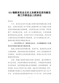 XX镇教育党总支在义务教育优质均衡发展工作推进会上的讲话