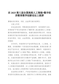 在2025第八届全国高校人工智能+数字经济教育教学创新论坛上致辞