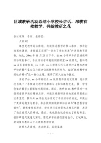 区域教研活动总结小学校长讲话,深耕有效教学,共绽教研之花