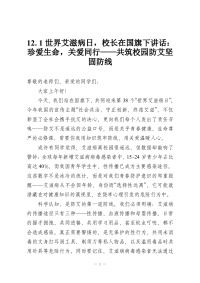 12.1世界艾滋病日,校长在国旗下讲话:珍爱生命,关爱同行——共筑校园防艾坚固防线