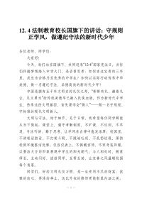 12.4法制教育校长国旗下的讲话:守规则正学风,做遵纪守法的新时代少年
