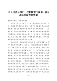 12.9世界足球日,校长国旗下演讲:以足球之力绘青春华章
