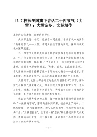 12.7校长在国旗下讲话二十四节气(大雪):大雪启冬,文脉相传