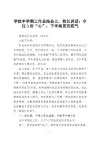 学校半学期工作总结会上,校长讲话:守住3份“心”,下半场更有底气