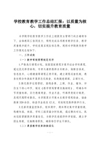 学校教育教学工作总结汇报:以质量为核心,切实提升教育质量