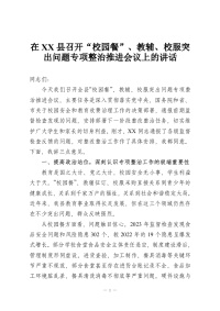 在XX县召开“校园餐”、教辅、校服突出问题专项整治推进会议上的讲话
