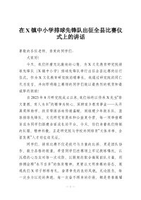 在X镇中小学排球先锋队出征全县比赛仪式上的讲话