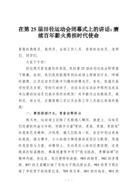在第25届田径运动会闭幕式上的讲话:赓续百年薪火勇担时代使命