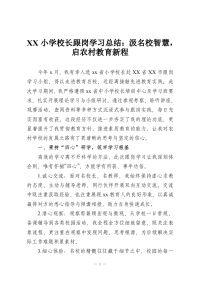 XX小学校长跟岗学习总结:汲名校智慧,启农村教育新程