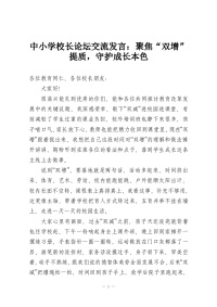 中小学校长论坛交流发言:聚焦“双增”提质,守护成长本色