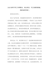 2025秋季开学工作部署会,校长讲话:守正创新强根基,砥砺奋进育新人