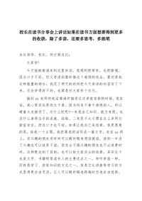 校长在读书分享会上讲话如果在读书方面想要得到更多的收获,除了多读,还要多思考,多练笔