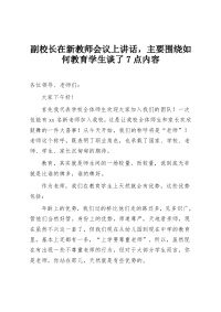 副校长在新教师会议上讲话,主要围绕如何教育学生谈了7点内容