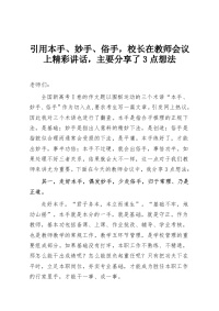 引用本手、妙手、俗手,校长在教师会议上精彩讲话,主要分享了3点想法