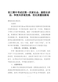 初三期中考试后第一次家长会,副校长讲话:和衷共济谋发展,优化质量创新高