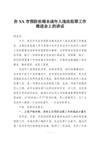 在XX市预防治理未成年人违法犯罪工作推进会上的讲话