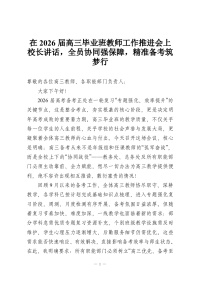 在2026届高三毕业班教师工作推进会上校长讲话,全员协同强保障,精准备考筑梦行