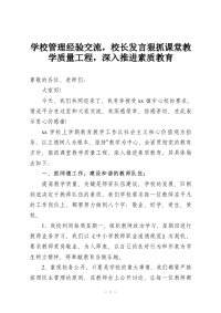 学校管理经验交流,校长发言狠抓课堂教学质量工程,深入推进素质教育