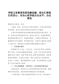 学校义务教育优质均衡创建,校长汇报我们有信心、有决心把学校办出水平,办出特色