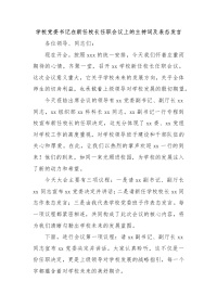 学校党委书记在新任校长任职会议上的主持词及表态发言