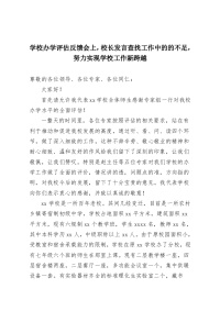 学校办学评估反馈会上,校长发言查找工作中的的不足,努力实现学校工作新跨越