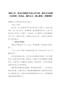 学校工作,校长汇报我们不会止步不前,我们万分珍惜今后的每一次机会,竭尽全力,倾心教育,用情管理