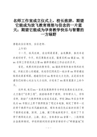 名师工作室成立仪式上,校长致辞,期望它能成为放飞教育理想与信念的一片蓝天;期望它能成为孕育教学快乐与智慧的一方绿野