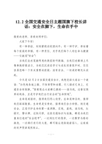 12.2全国交通安全日主题国旗下校长讲话:安全在脚下,生命在手中