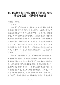 12.4法制宣传日校长国旗下的讲话:学法懂法守底线,明辨是非向光明