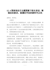 12.4国家宪法日主题国旗下校长讲话:增强法治意识,做遵纪守法的新时代公民