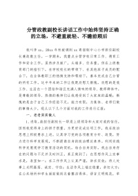 分管政教副校长讲话工作中始终坚持正确的立场,不避重就轻、不瞻前顾后