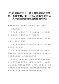 在40周年校庆上,校长精彩讲话我们坚信,充满智慧,富于开拓,求真务实的xx人一定能创造出更加辉煌的明天!