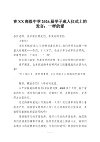在XX高级中学2026届学子成人仪式上的发言:一样的爱