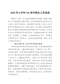 2025年上半年XX初中校长工作总结