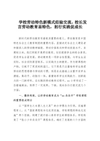 学校劳动特色新模式经验交流,校长发言劳动教育显特色,躬行实践促成长