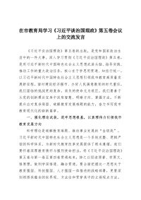 在市教育局学习《习近平谈治国理政》第五卷会议上的交流发言