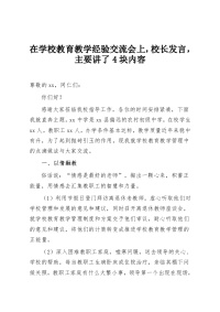 在学校教育教学经验交流会上,校长发言,主要讲了4块内容