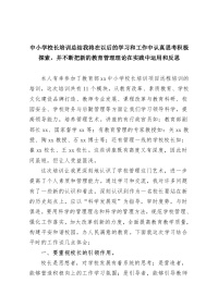 中小学校长培训总结我将在以后的学习和工作中认真思考积极探索,并不断把新的教育管理理论在实践中运用和反思