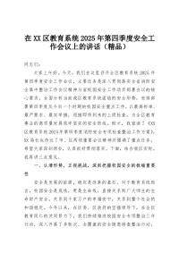 在XX区教育系统2025年第四季度安全工作会议上的讲话(精品)