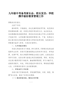 九年级中考备考家长会,校长发言:学校携手做好教育管理工作
