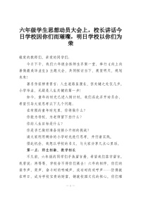 六年级学生思想动员大会上,校长讲话今日学校因你们而璀璨,明日学校以你们为荣