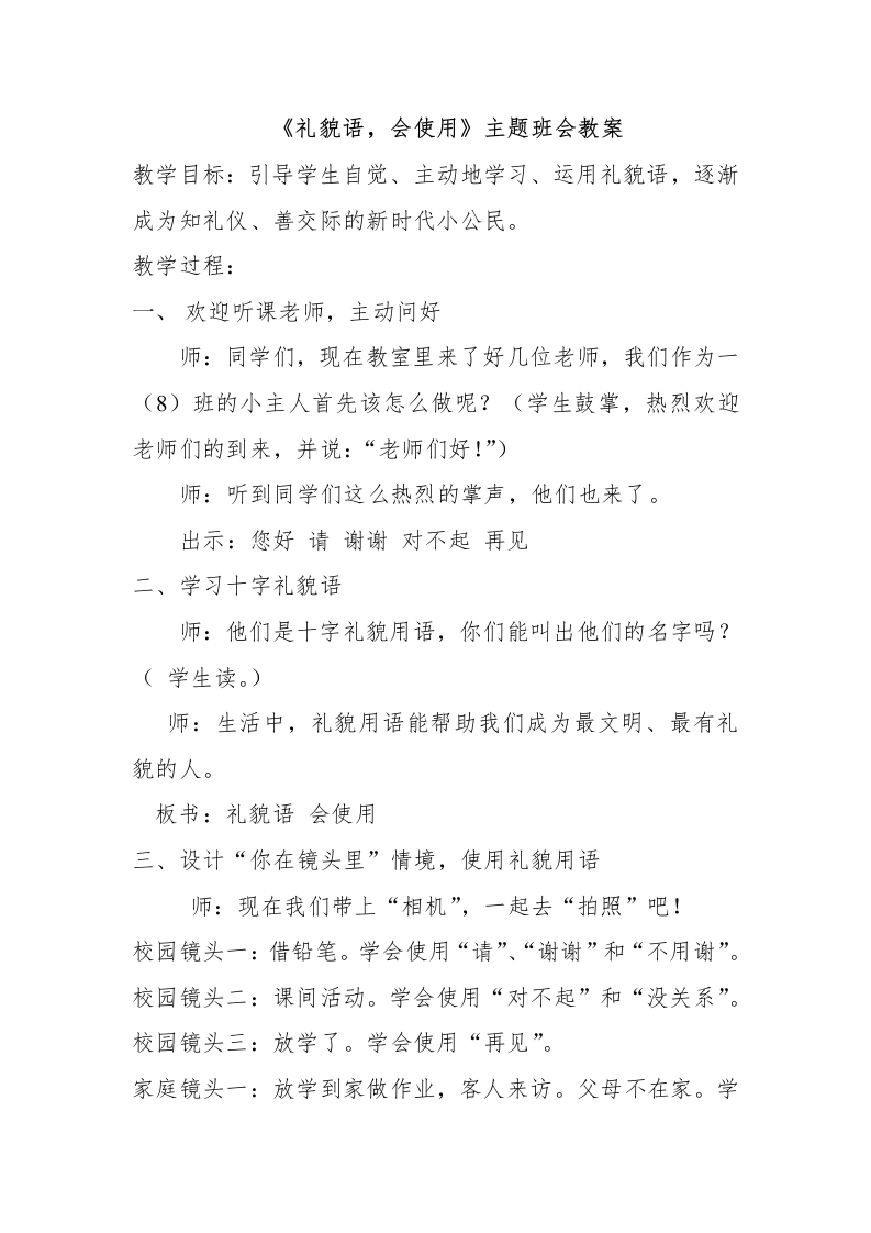 首页班主任资料班会教案《礼貌语 会使用》主题班会教案
