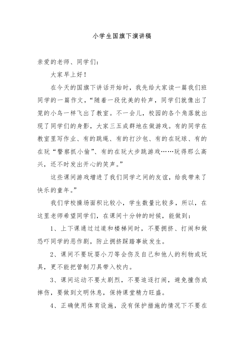 首页德育资料专题讲话小学生国旗下演讲稿—安全教育
