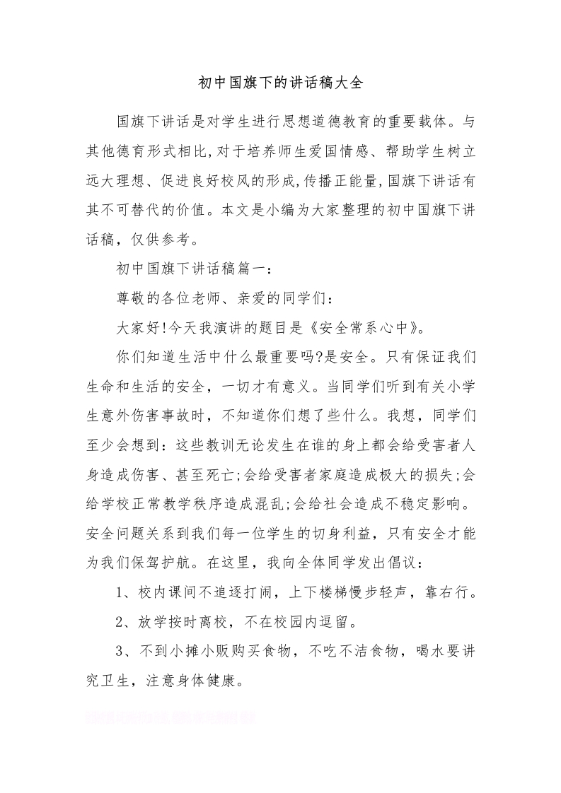 初中国旗下的讲话稿大全[推荐]