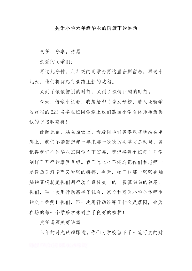 关于小学六年级毕业的国旗下的讲话[推荐]